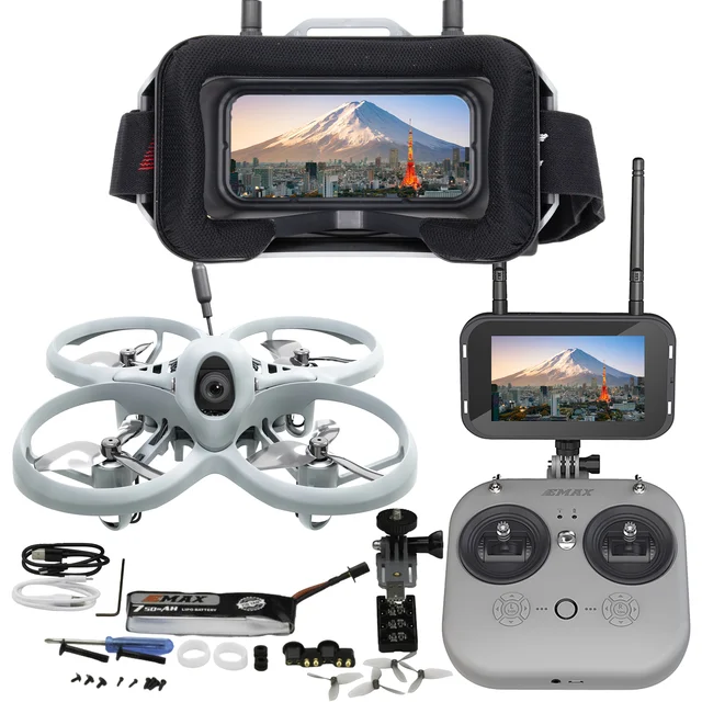 EMAX New Tinyhawk Lite Micro Indoor Beginner FPV Racing Drone Whoop Full Set RTF BNF Kit with FPV Goggles and Remote Controller